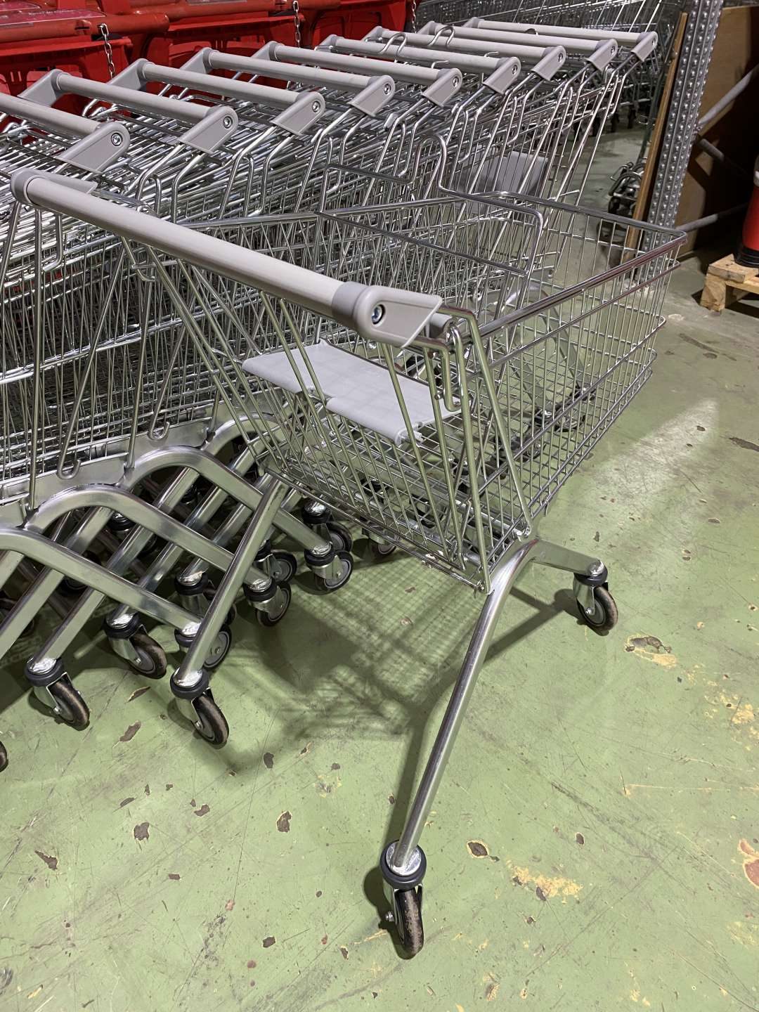Felújított egyszínű szürke csőmarkolattal és szürke műanyagokkal szerelt horganyzott kocsik betétizár nélkül, gyereküléssel.2000 Ft-os felár ellenében vállaljuk egyedi csőmarkolat elkészítését és felszerelését.Típus: Wanzl EL 75Méretek: 816mm * 553mm* 967mm ( Hossz*Szél*Mag)Méretek: 10 kocsi összetolva: 2170 mm.Betéti zár: NincsŰrtartalom: 74 literTeherbítás: 74 kgVáz színe: Horganyzott, lakkozottMűanyagok színe: szürkeFelújítás során a kocsikat alkatrészeire bontjuk, vázat felületkezeljük. Kerekeket cseréljük, vagy tisztítjuk, kopóalkatrészeket kicseréljük.Kocsikra 12 hónap garanciát adunk.Jelenlegi készlet: 8 darab. (2 darab fix hátfallal szerelt, azaz, gyerekülés nélküli)