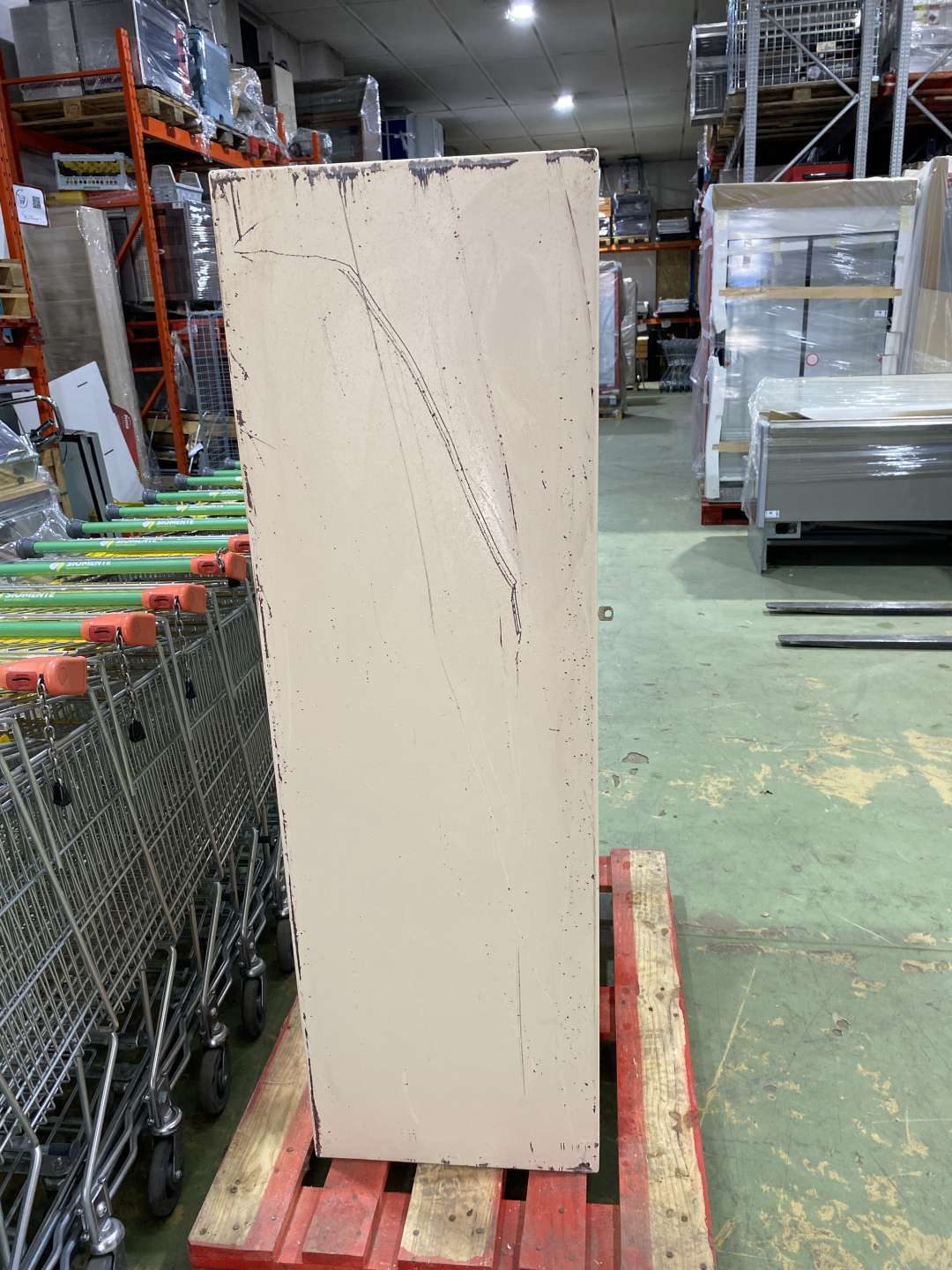A kívűl-belűl hat ponton zárodó ajtó és a szekrénybelső kíváló esztétikai állapotú, azonban a bútor baloldalán szállításból adódó sérülések vannak.