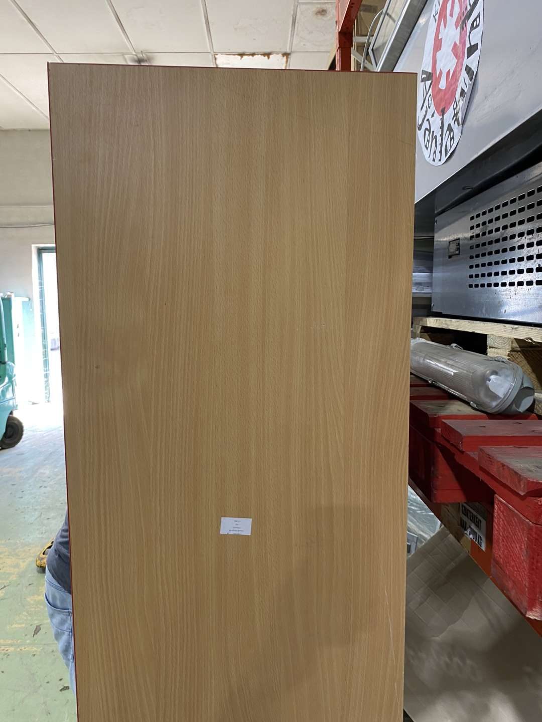 Egyedi gyártású tárolópolc, dekor bútorlapból, elsősorban az oszlopok éltal tagolt hűtőpsorok és polcsorok áthidalására.