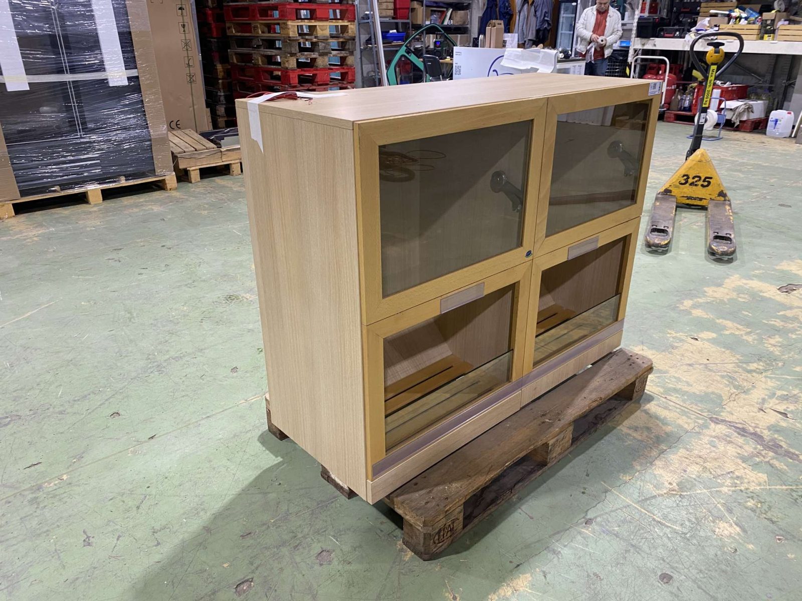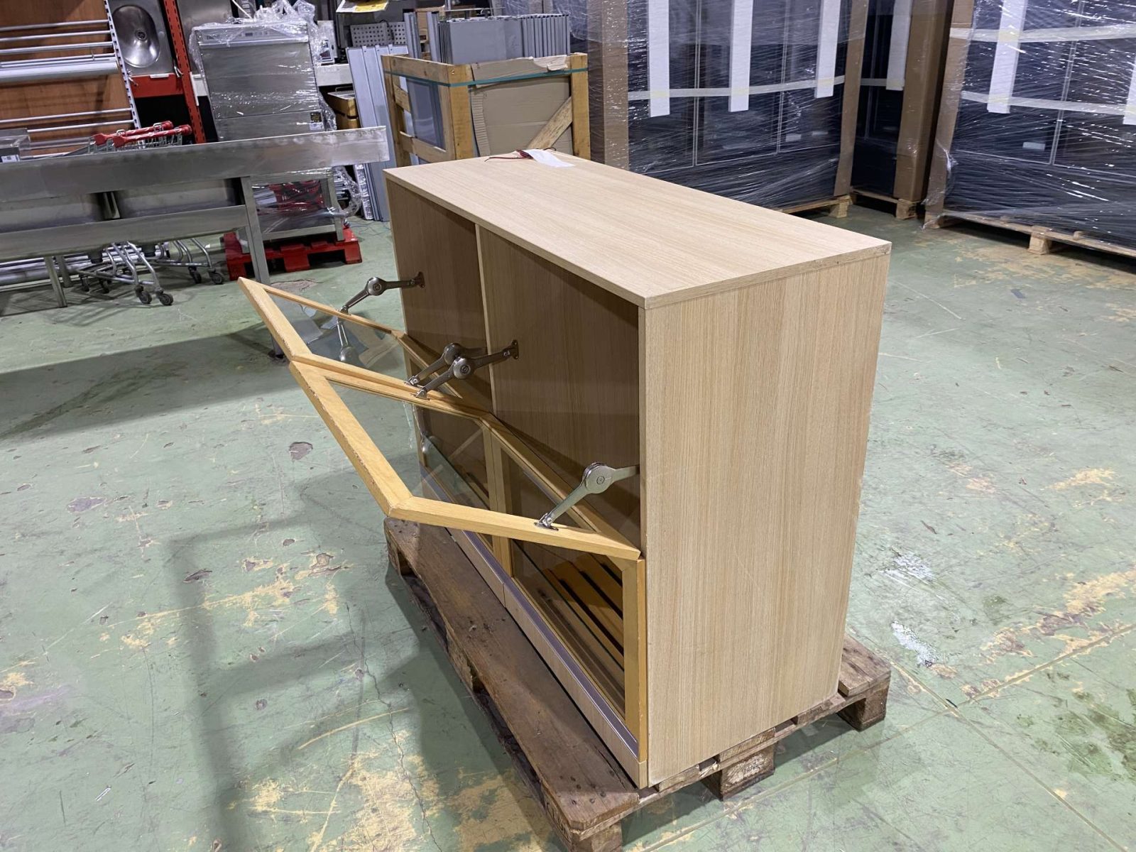 Felöntő, kétrészes adagolóval. Elhelyezhető bármilyen típusú 125 cm széles fali regálra, fali polcra. Berendezés újszerű, egyik oldalán apróbb karcolások. A baloldali morzsatartó fiók frontja cserélve lett. Aluprofilos LED világítás van a bútorban, de a trafó nincs meg hozzá. Új, öntapadós víztiszta polcsínek.