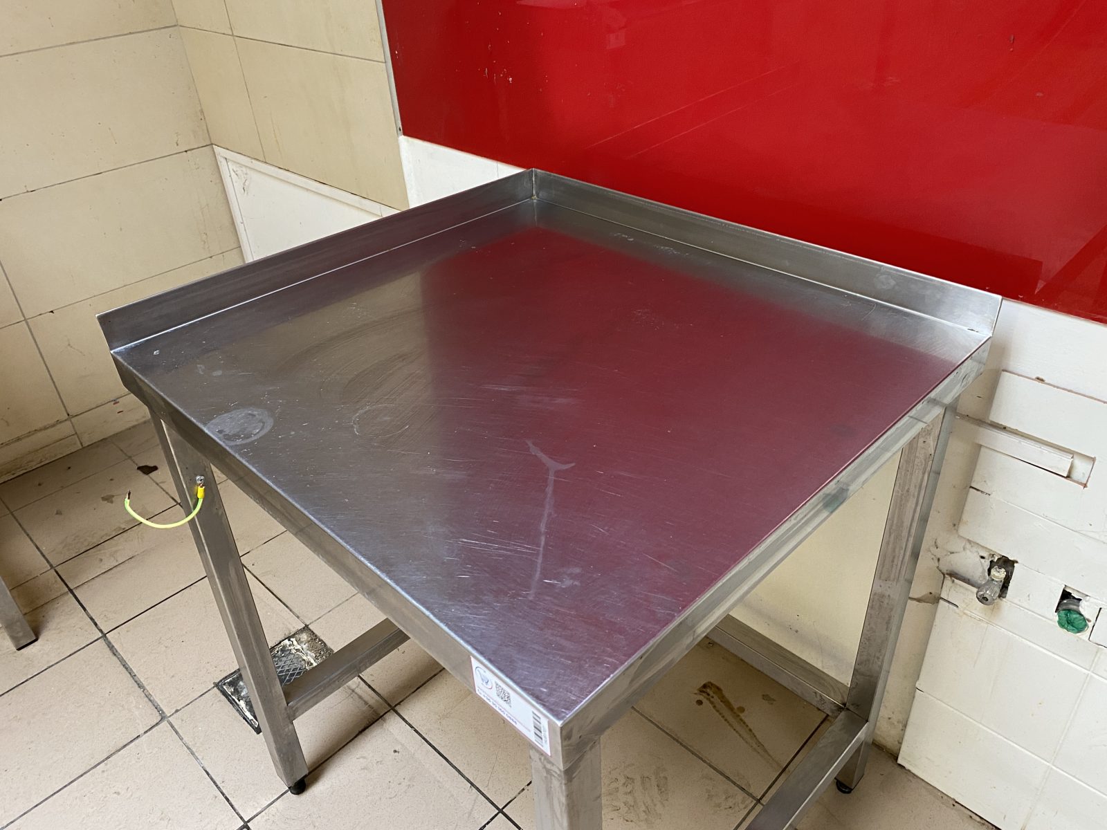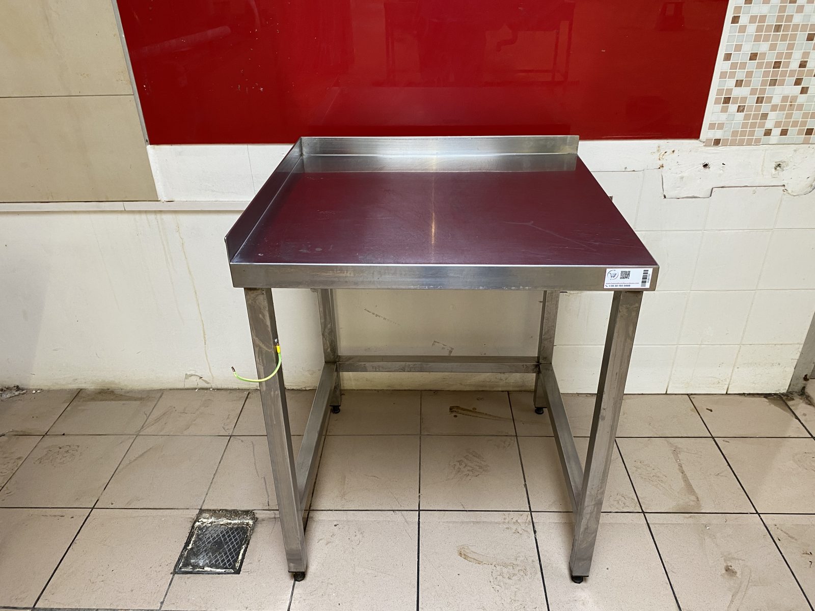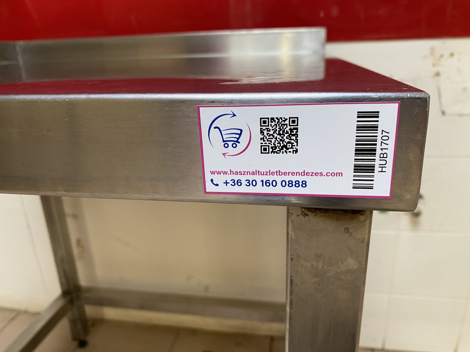 Rozsdamentes munkaasztal 75*75*85cm. ( Szélesség*mélység*magasság) Baloldali és hátsó felhajtással, alsó merevítővel, rezgéscsillapított munkalappal.