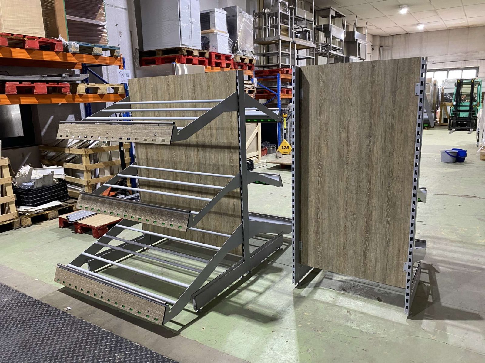 TEGO vázra szerelt zöldséges regál, 80-as tag 3 darab döntött ládatartó polc, 4 darab M10-es rekesz bemutatására alkalmas. Lanti árak kosarak és árkijelzők nélkül értendőek.