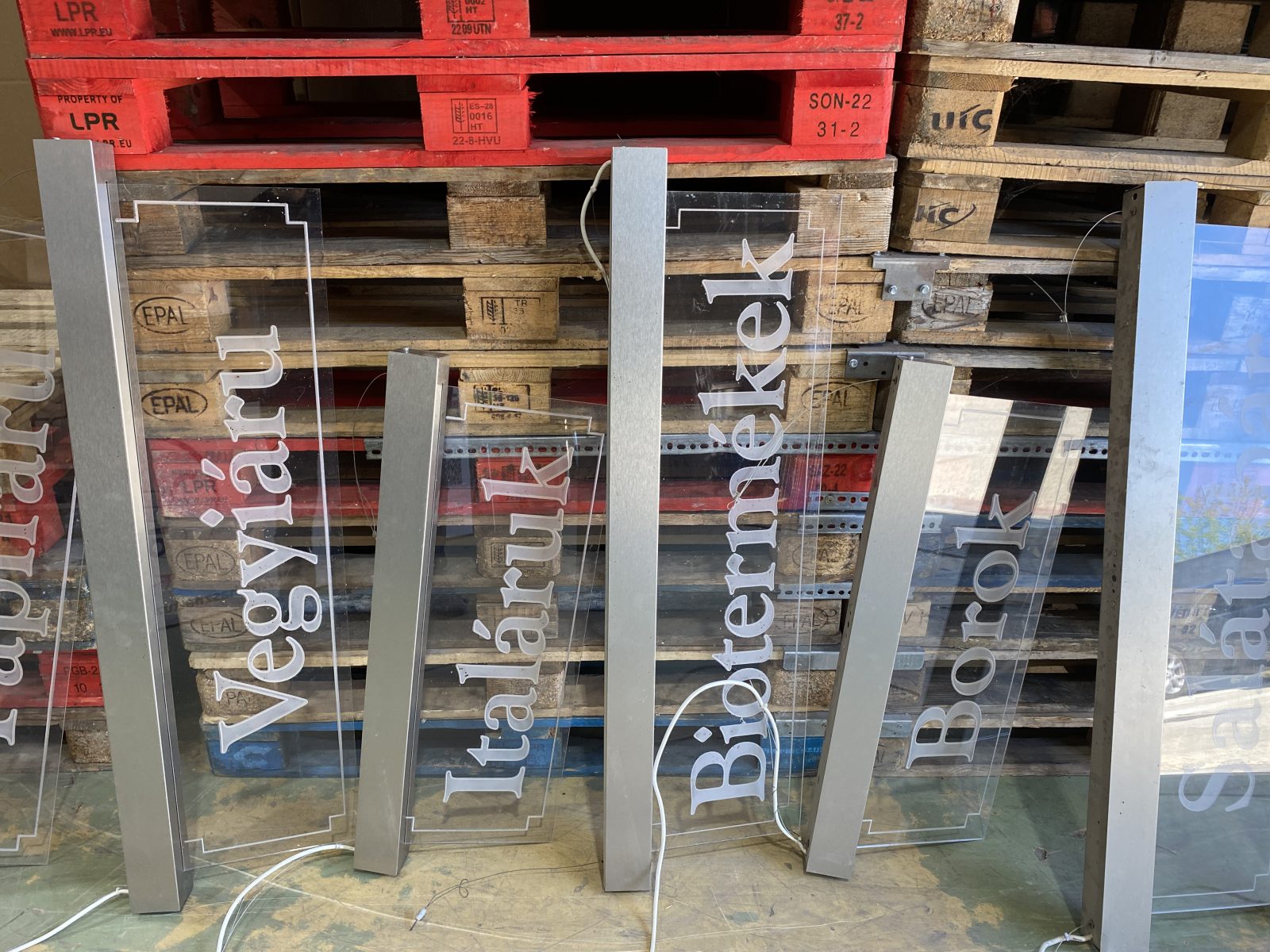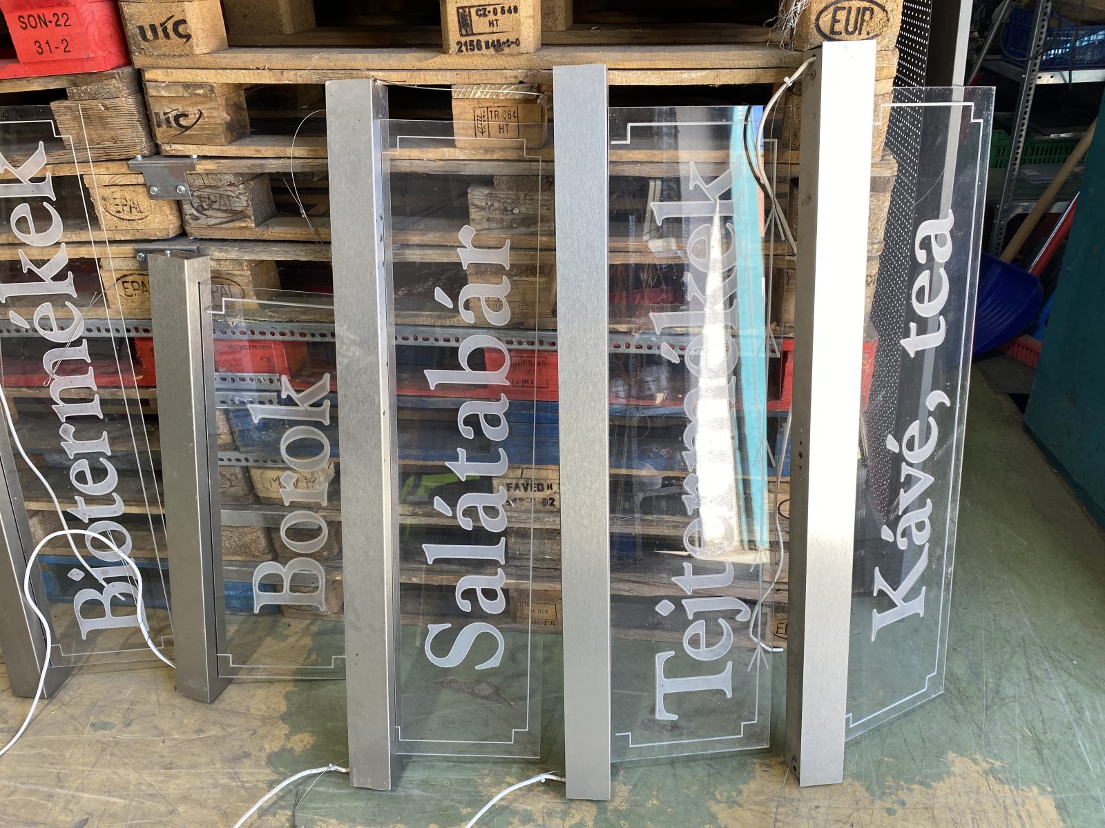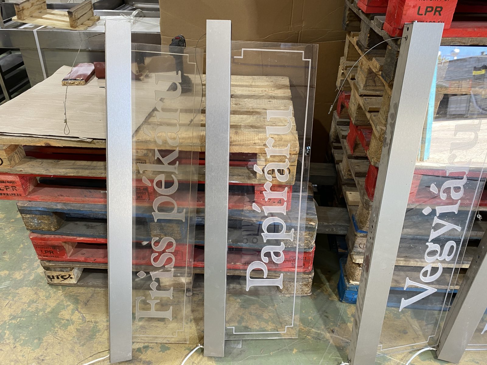 Évilágított információs plexitábla élelmiszerüzletbe. Szinte az összes áruterülethez!