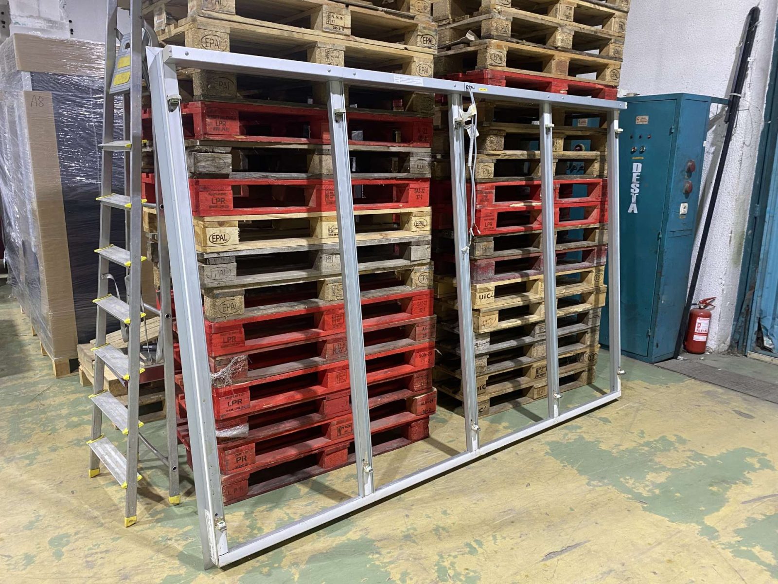 4 ajtós szendvicspanelbe, vagy falba építhető alumínium keret CISAPLAST alumíniumtokos thermoajtóval. Dupla üvegezés, masszív, újszerű állapot. Beépíthető kereten vertikális világítás fénycsövek részére.