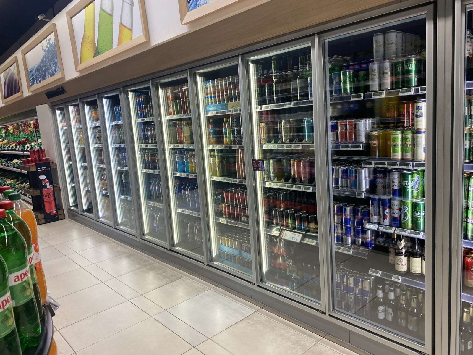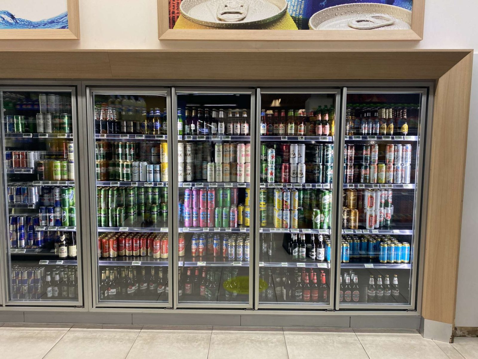 Épített hűtő, italhűtő üvegajtó 5 ajtós kerettel