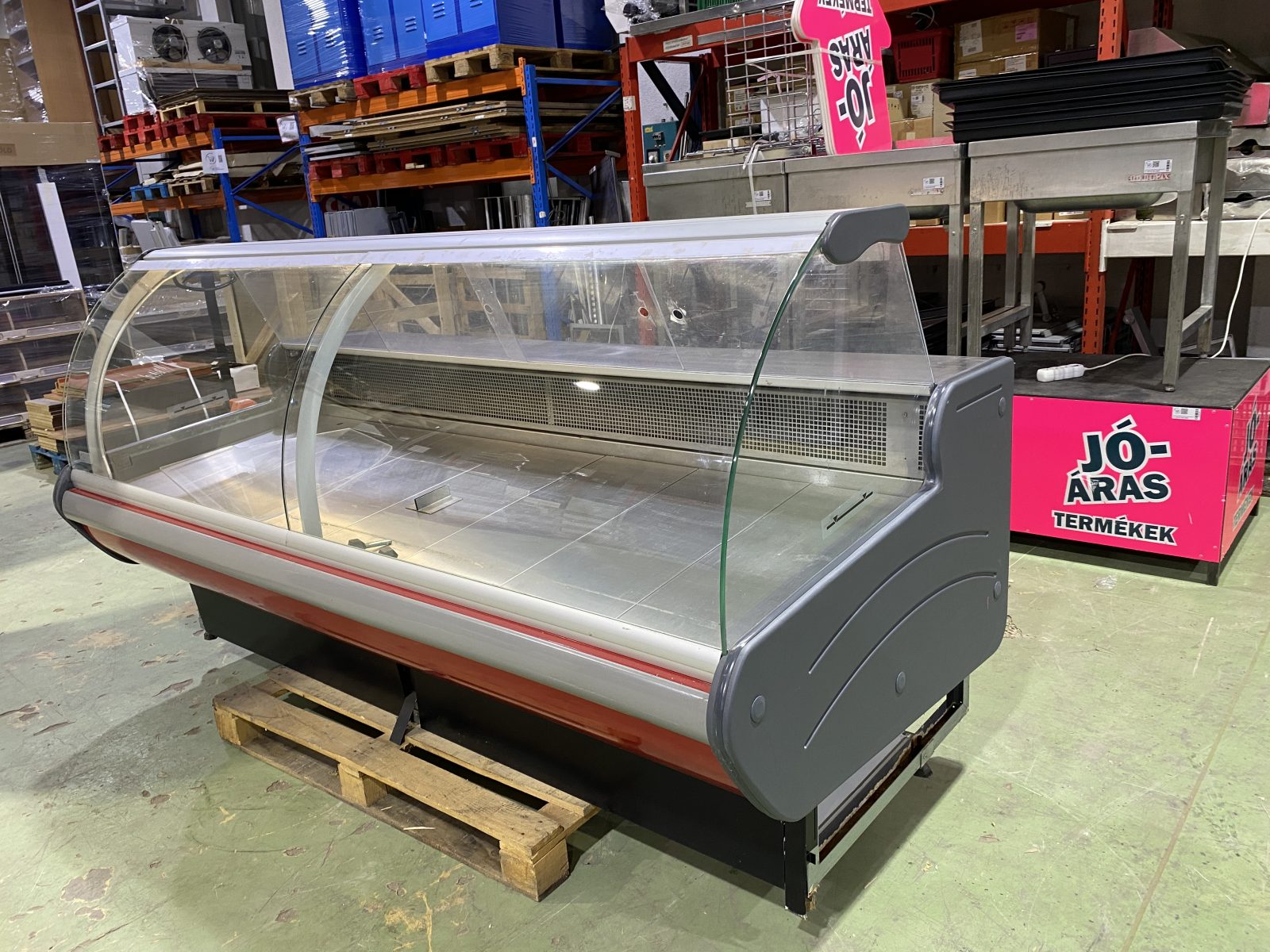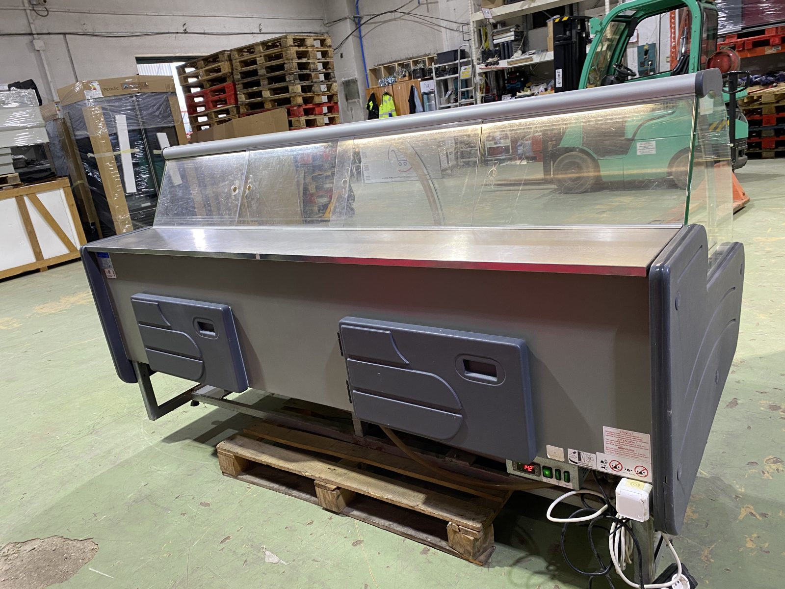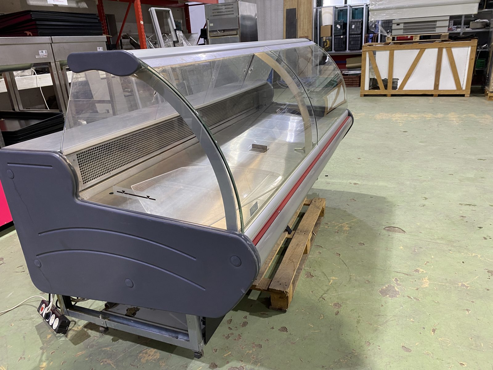 Hajlított üvegű kiszolgálópult, beépített aggregátorral