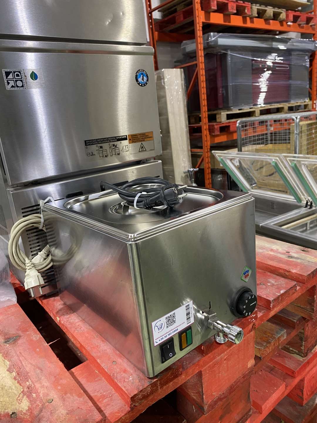 A vízleeresztő csappal ellátott Bain-marie fokozatosan melegíti a tartalmat, vagy szabályozott, állandó hőmérsékleten tartja, égés vagy forralás nélkül. Termosztát jelzőfény, túlmelegedés elleni védelem, könnyű ürítés. GN 1/1-es vagy kisebb GN-kombinációkhoz használható