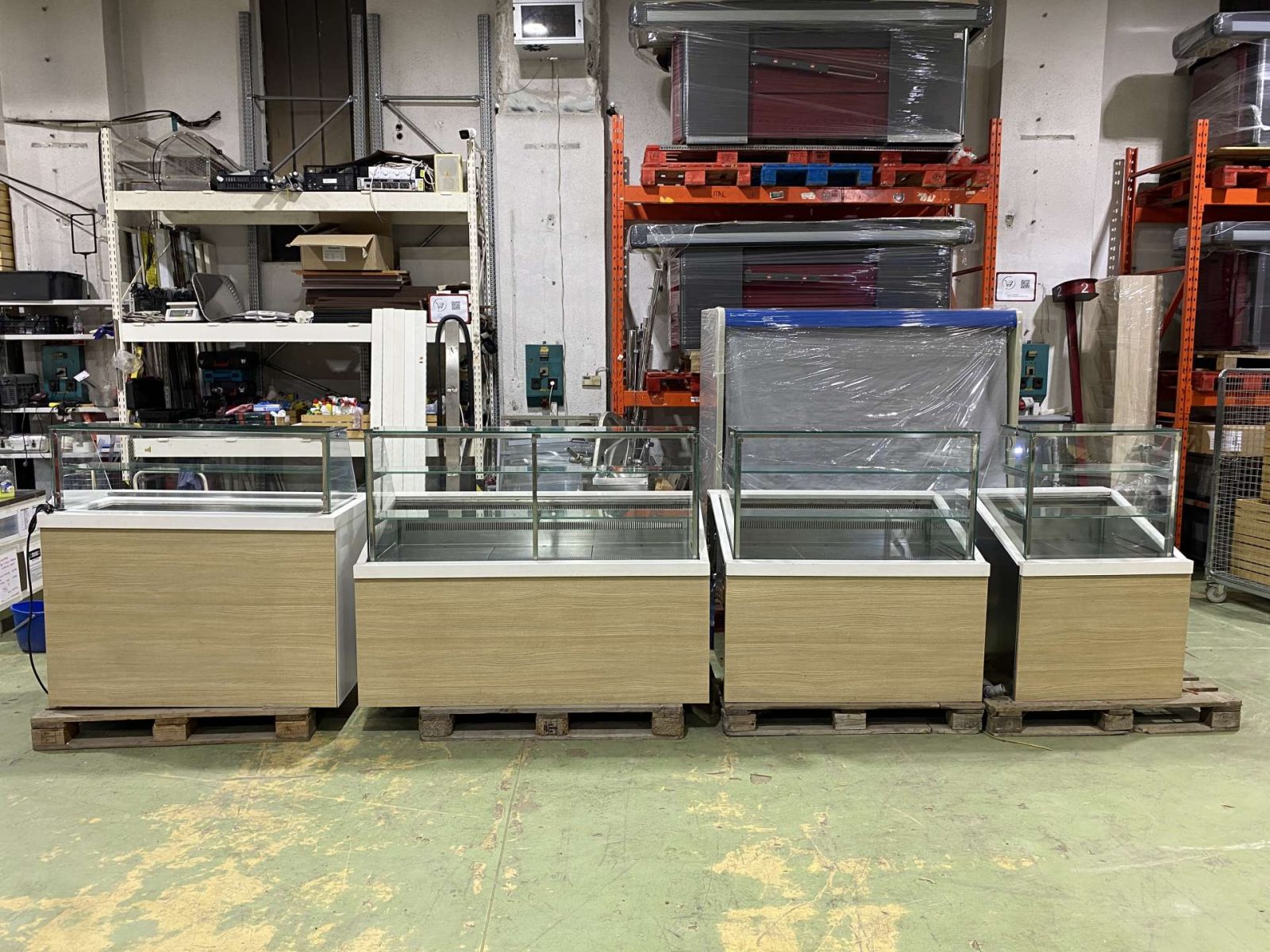 Rozsdamentes vázszerkezet, felépítmény polírozott rozsdamentes szerkezetekkel szerelt. Munkalapokon és a frontzárásokon fehér Technistone műkőburkolattal. Frontok prémium "tölgy" bútorlappal burkoltak. Háromoldalról zárt, beépített aggregáttal működik. ( 3oC-7 oC)