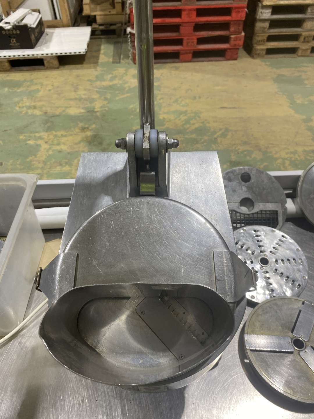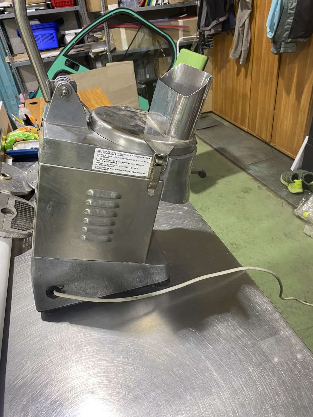 Zöldségszeletelőgép, rozsdamentes acélból. Műanyag adagoló rúddal, amely rögzített a készülékhez. Elektronikus nyomógomb panellel, egyszerű tisztíthatóság, nagy teljesítményű motor, 6 darab tárcsával, tapadó gumitalppal szerelve. Fordulatszám: 300 fordulat/perc.