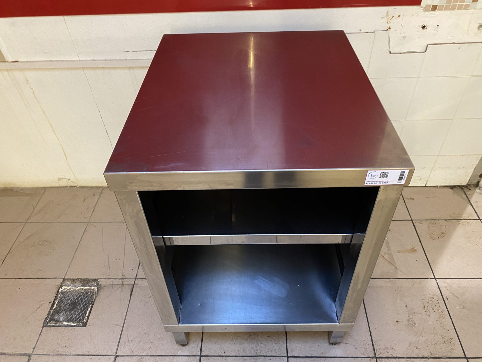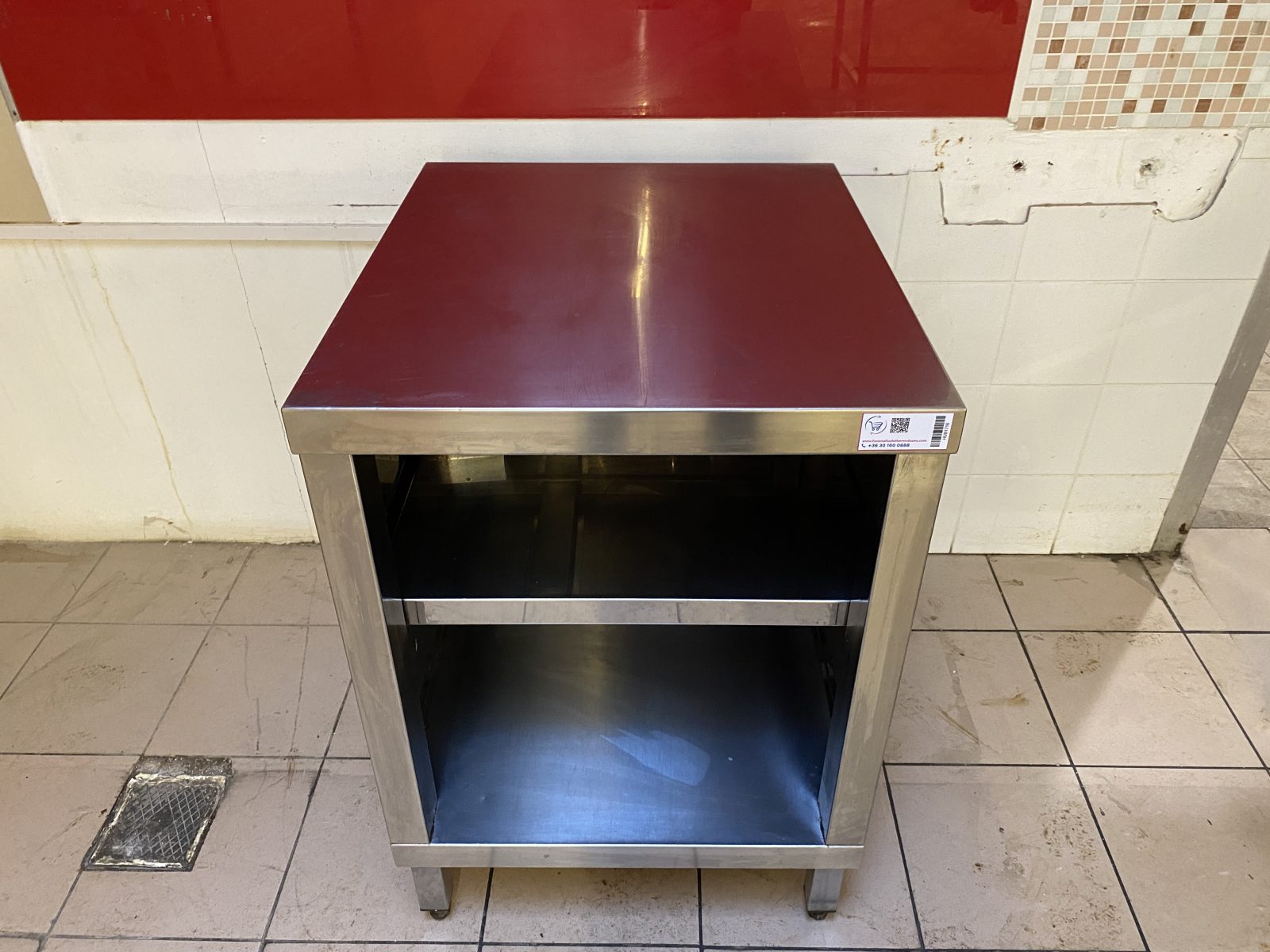 Rozsdamentes munkaasztal 60*70*85cm. ( Szélesség*mélység*magasság) Háromoldalról zárt, alsó,- és középső polc, rezgéscsillapított munkalap.